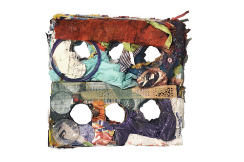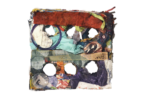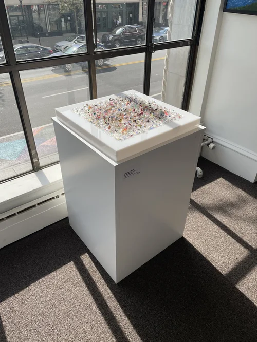 Painter’s tarp, clear plastic, mixed media, pop-up tent structure.